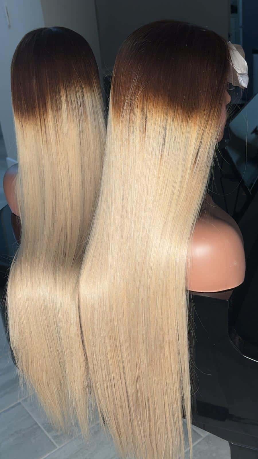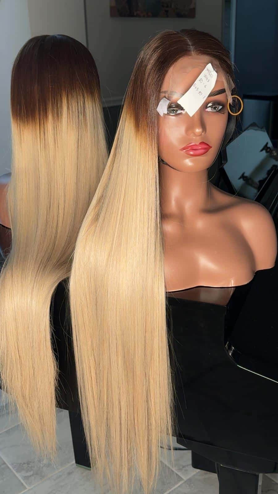 34-inch donor human hair wig in a rich chocolate shade with natural movement, softness, and luxury length.